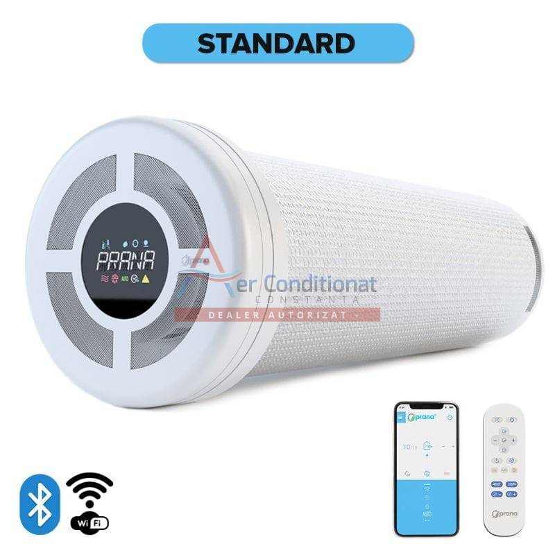 Recuperatorul PRANA 200C STANDARD este un sistem de ventilare cu recuperare de caldura din gama ErP lansata in anul 2023, care ventileaza si reimprospateaza aerul din incapere pastrand pana la 93% din resursele energetice ale aerului in interior, este un produs patentat si certificat la laboratorul IMQ din Italia si corespunde tuturor reglementarilor ErP in vigoare.PRINCIPIUL DE FUNCTIONARE AL RECUPERATORULUI PRANARecuperatorul asigura un flux permanent de aer proaspat, normalizeaza umiditatea in incapere si elimina definitiv cauzele aparitiei condensului pe geamuri, igrasiei si mucegaiului.